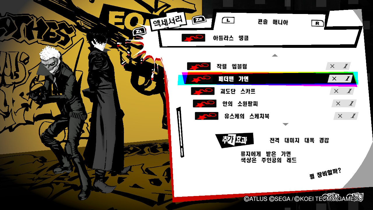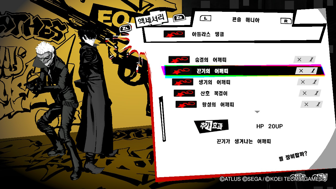페르소나5 스크램블 스텟상승 방어구 목록
