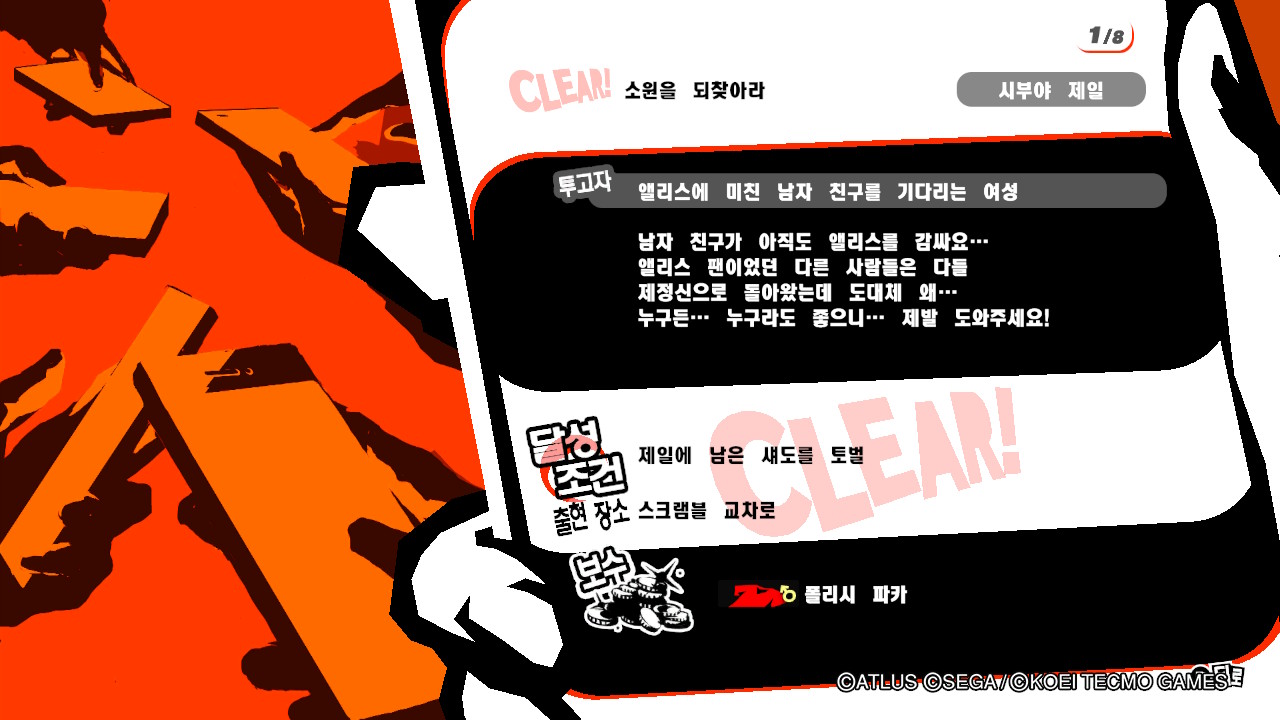 ![]() 시부야 제일의 스크램블 교차로에 가면 이벤트가 발생한다. 이벤트 후 모든 그림자를 잡아 아지트 리퀘스트에서보고를하면 완료. |