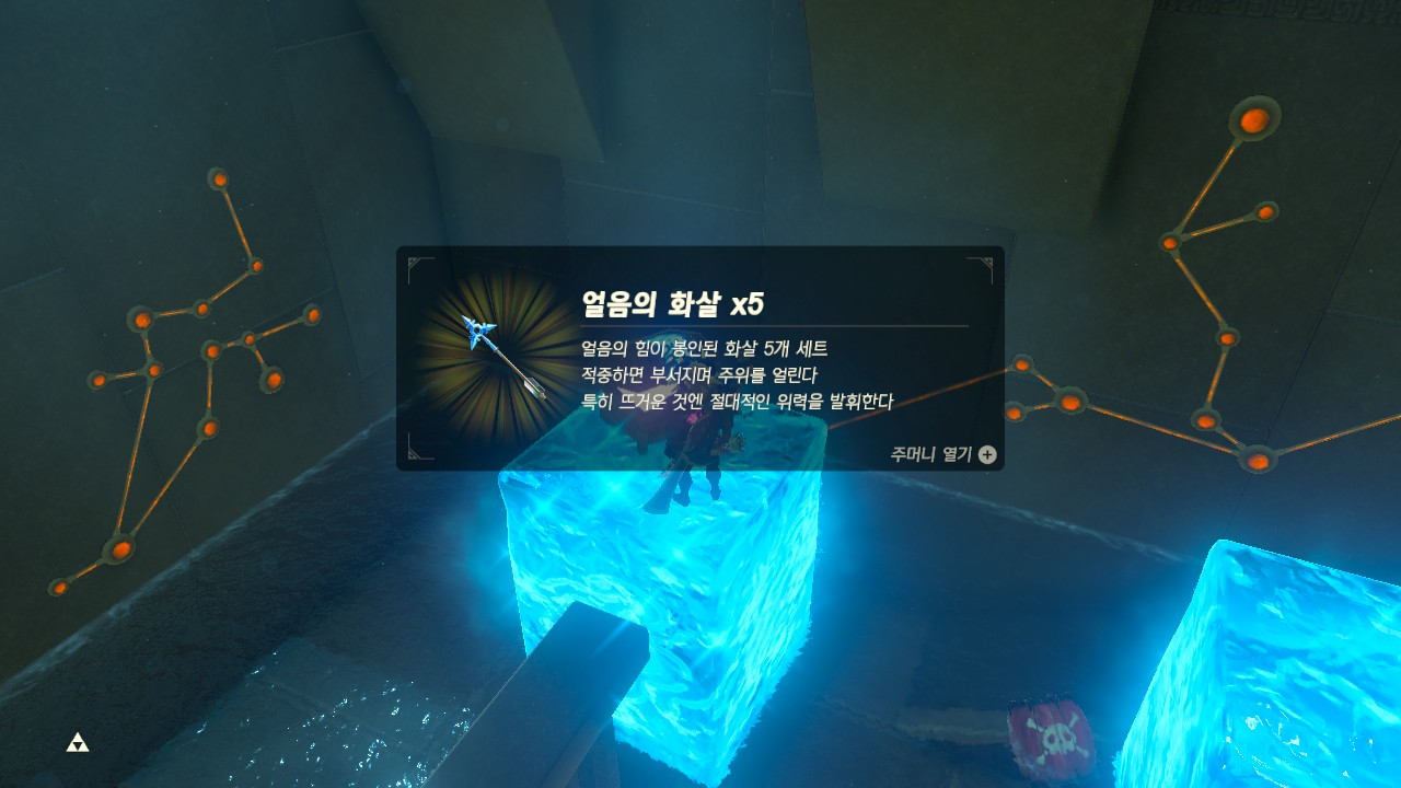 보물상자에는 얼음의 화살과 오팔이 들어 있다.